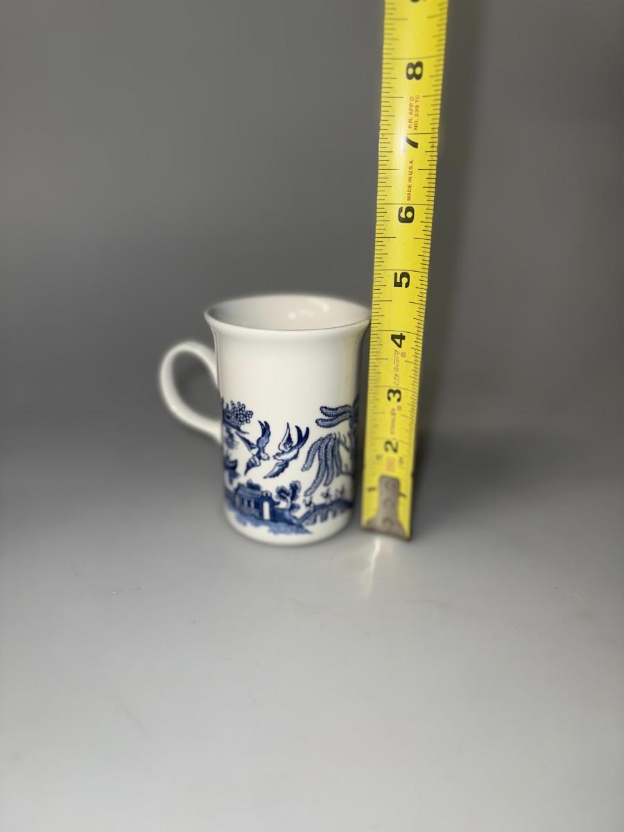 Churchill England Blue Willow Mugs 4 3/8”, Made in England, Blue and White Coffee Mug Tea, Chinoiserie, Vintage, Ear Handle, Tall Mug