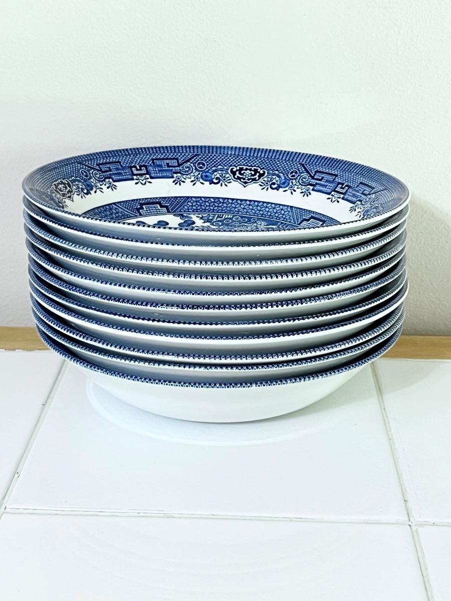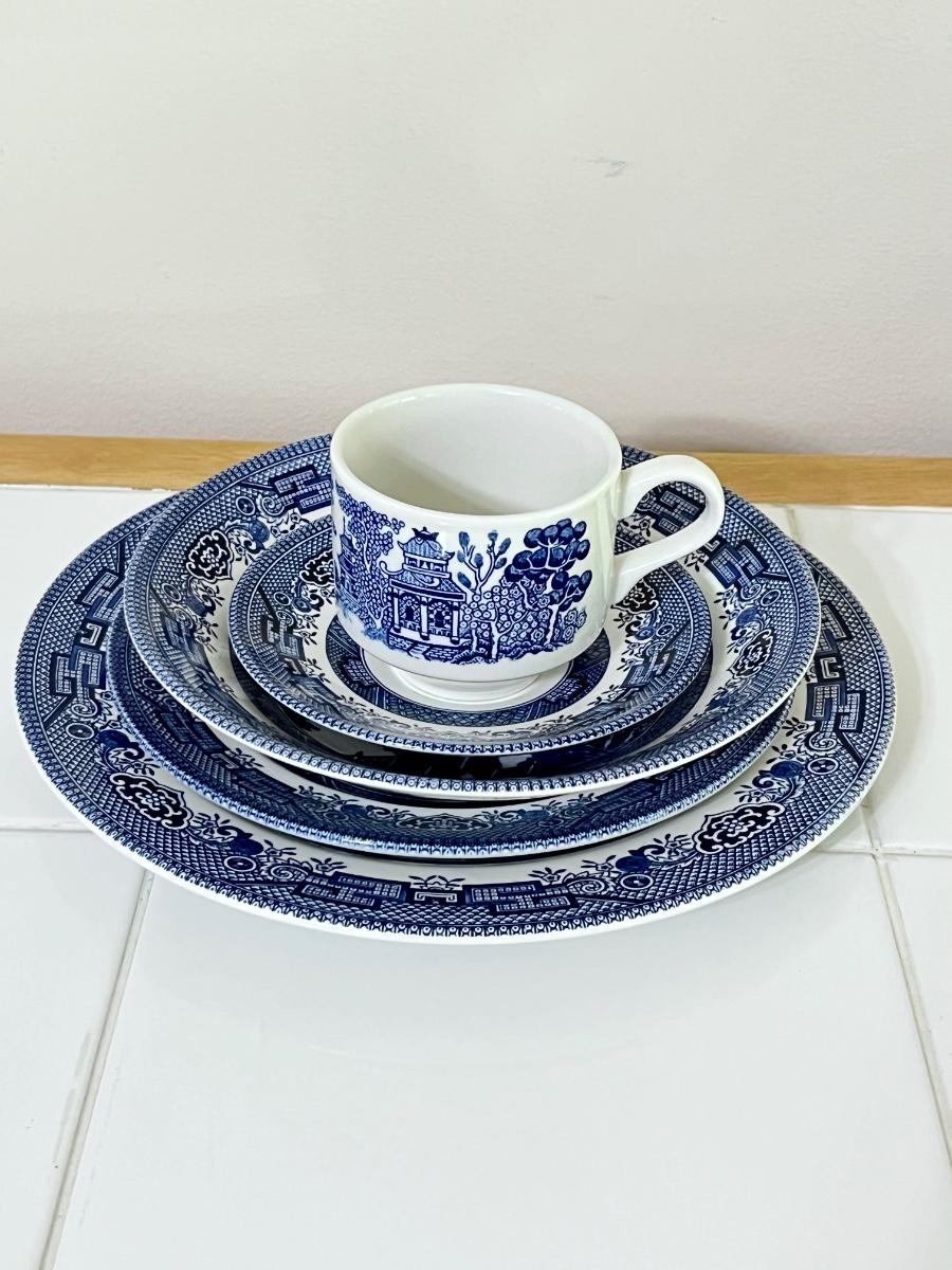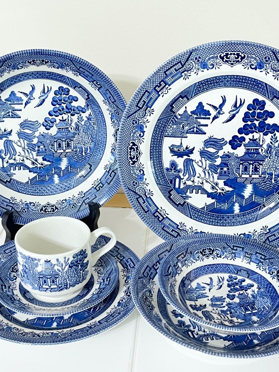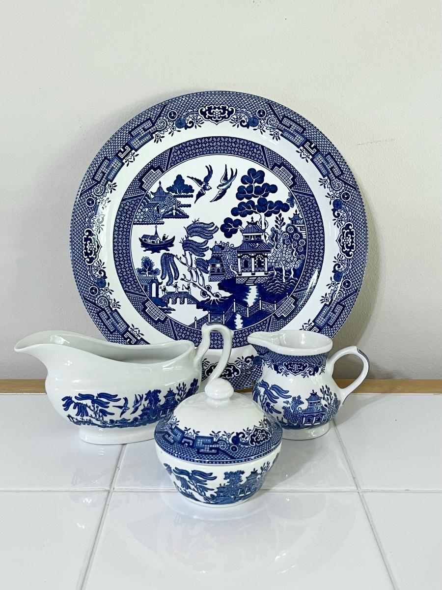 CHURCHILL ~ Willow Blue ~ 7 Piece Service For 12 ~ BONUS Salt & Pepper Shakers