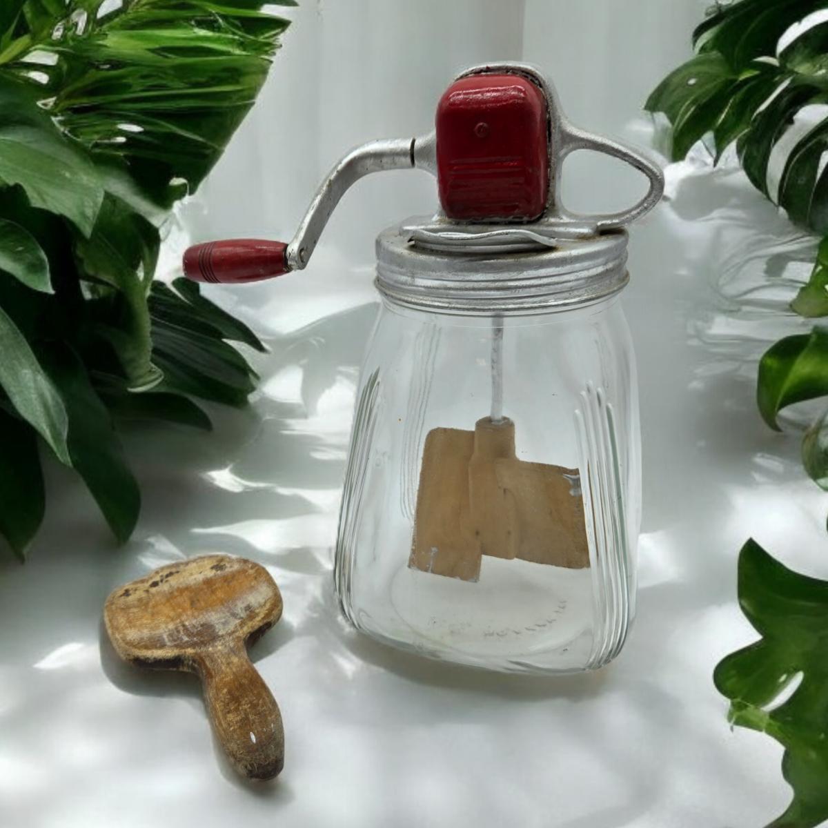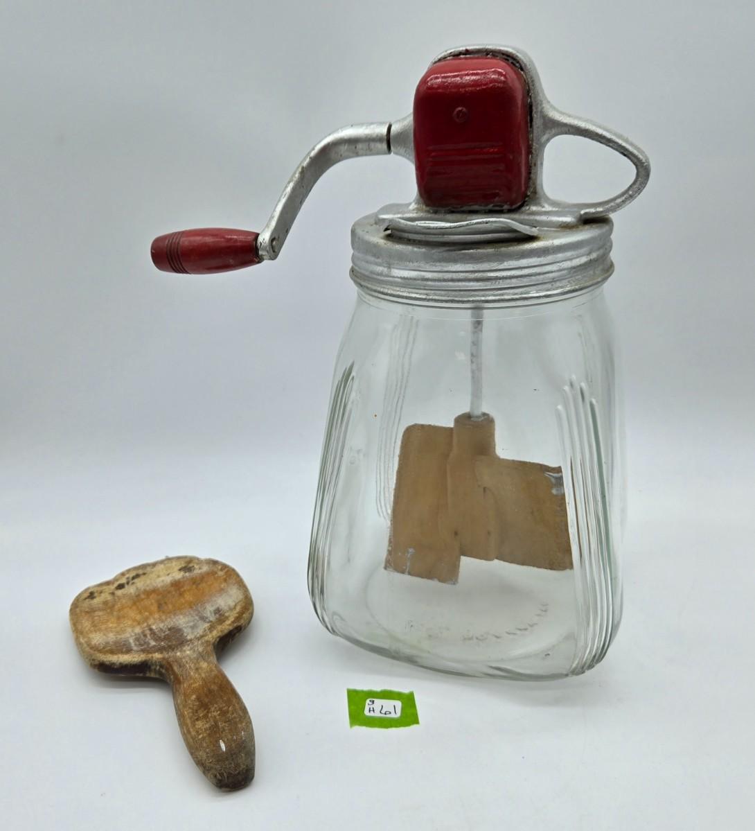 Churn is functional. Comes with wooden utensil as shown.