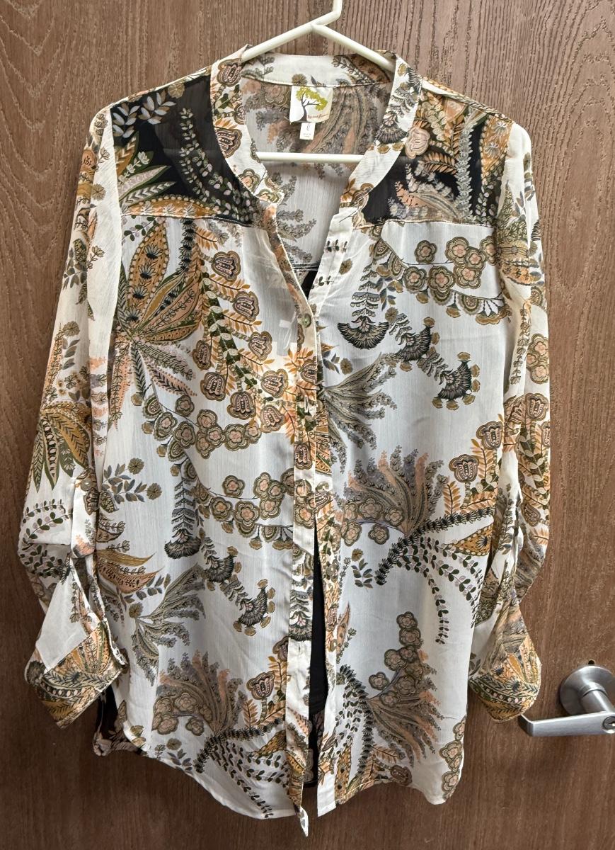 Floral Paisley patterned long sleeve blouse with NWT black cami Fig & Flower