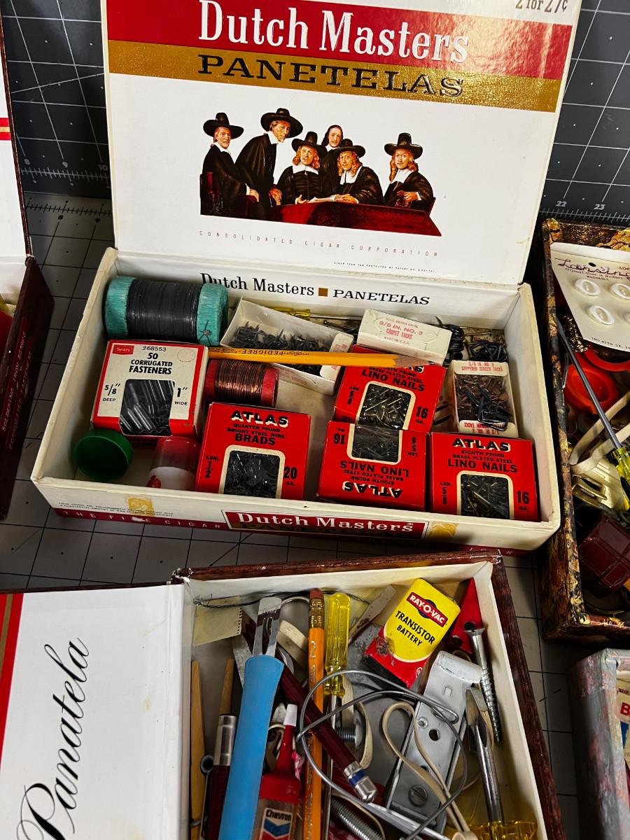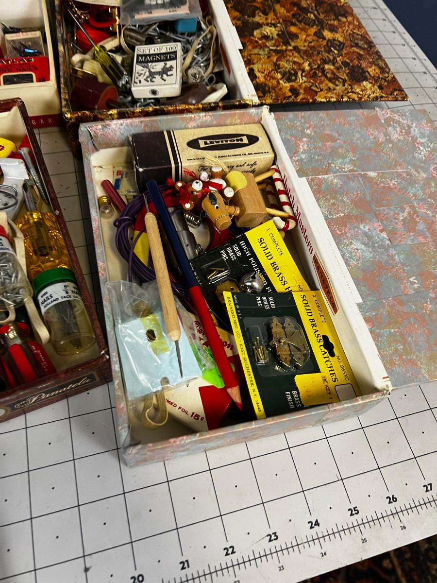 Cigar Boxes full of junk drawer clean outs.