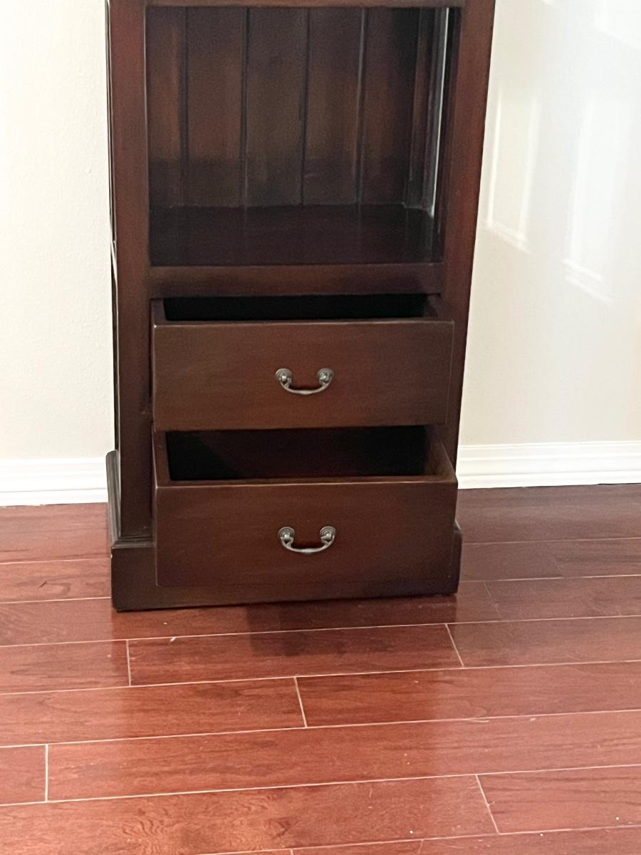 72” H x 25.5” W x 14” D ~ no brand name found ~ drawers slide easily ~ no brand name found