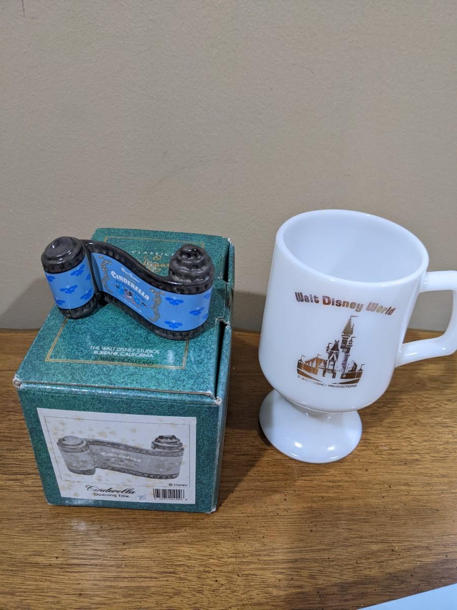 Walt Disney Collection Cinderella piece and milk glass mug - some fade