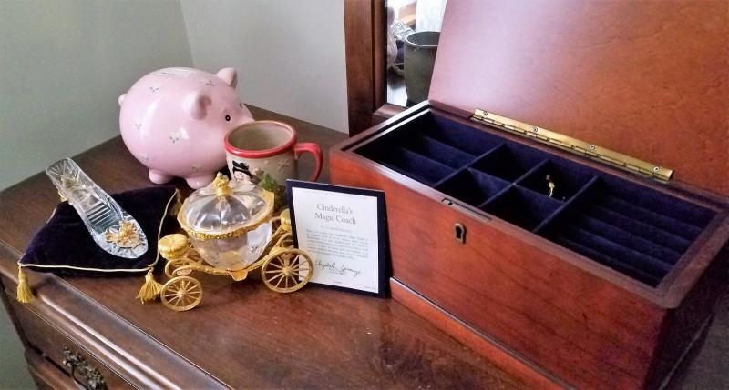Great Collectibles from Cinderella with piggy bank and wooden jewelry box