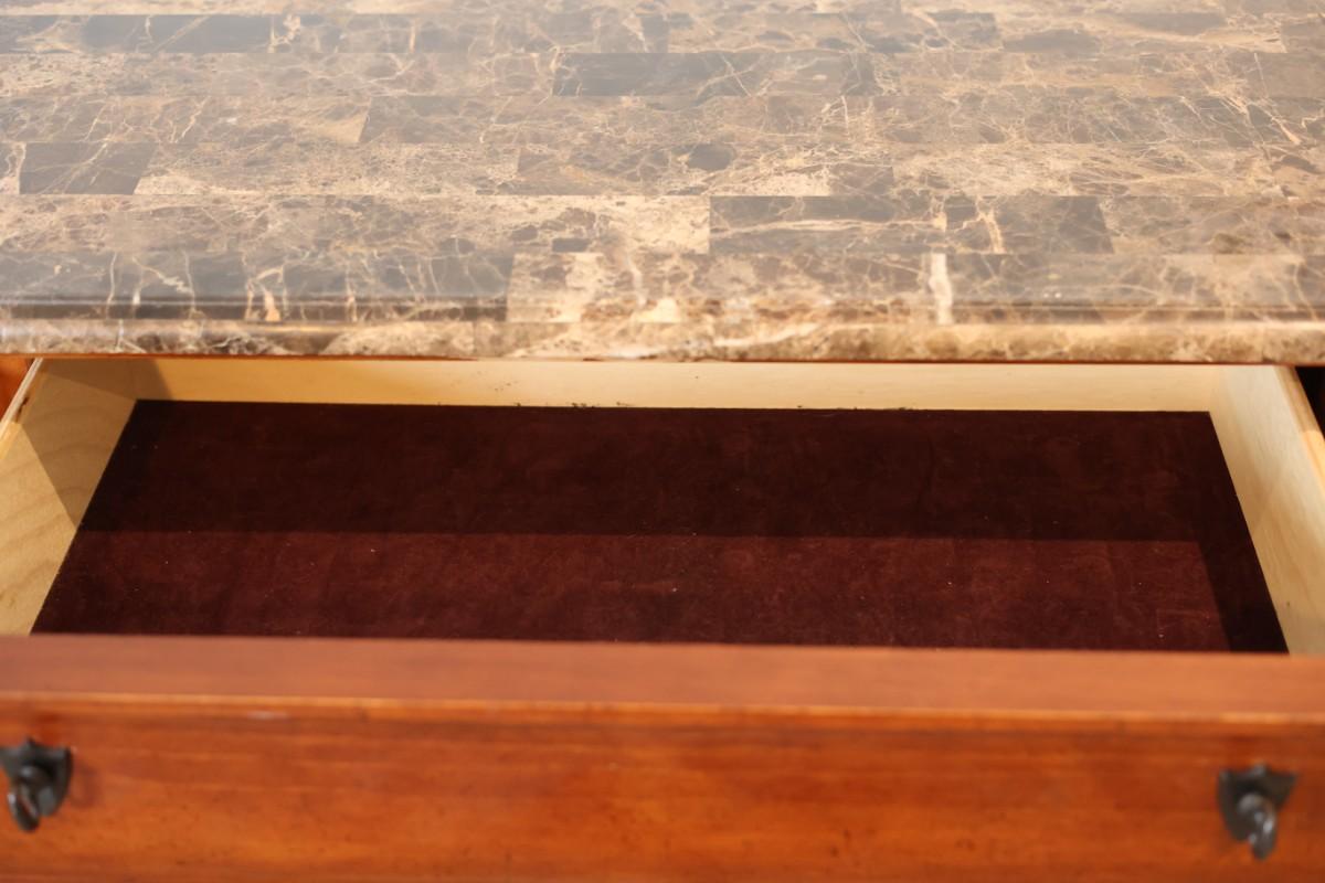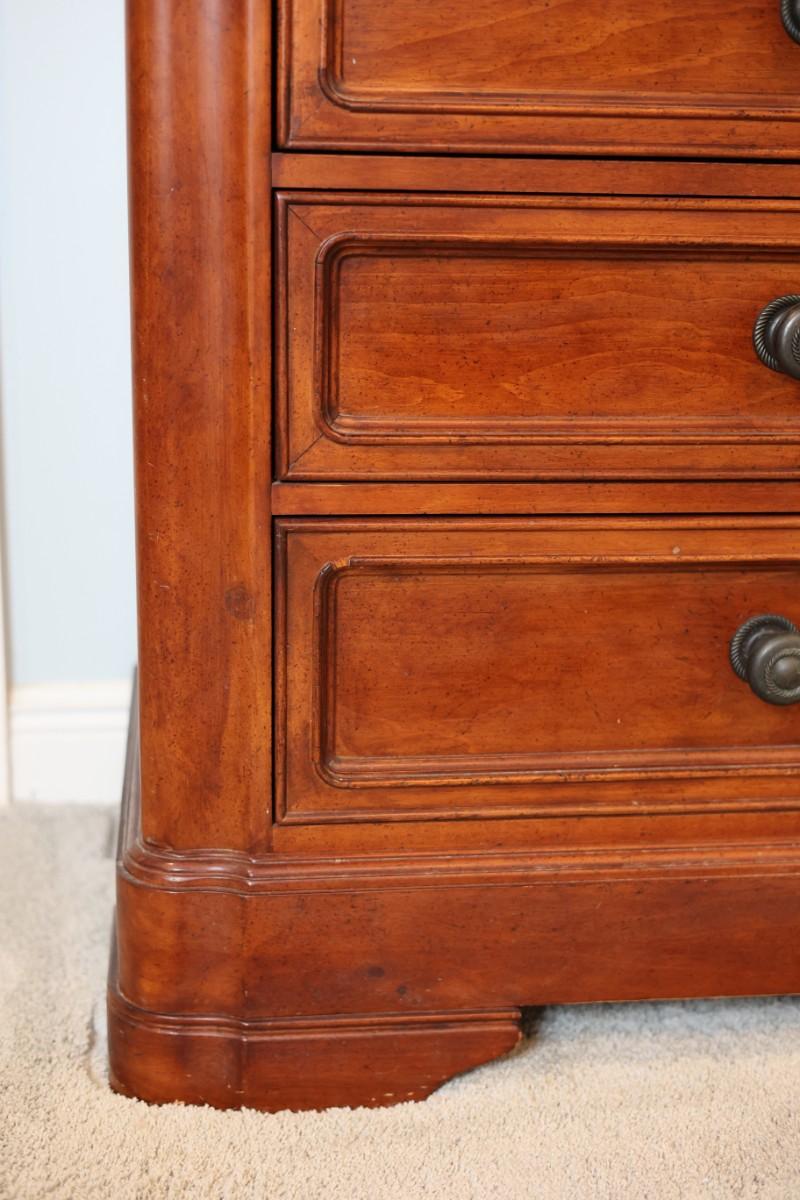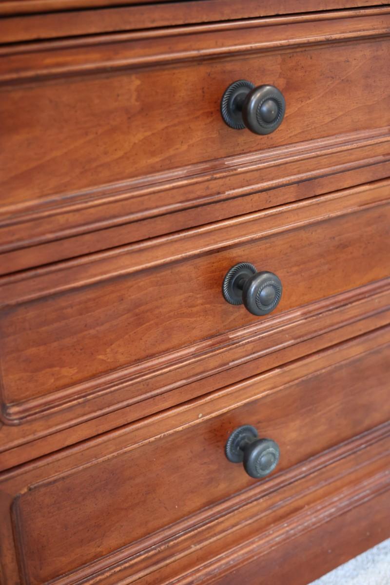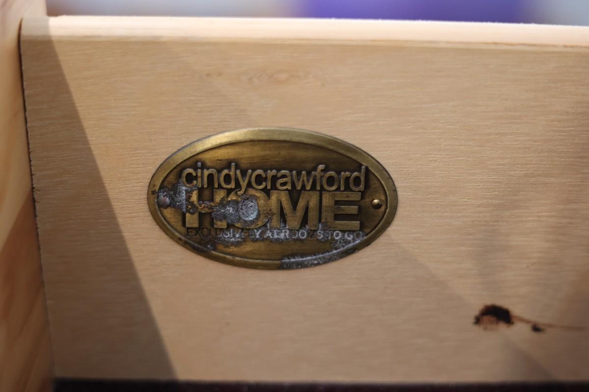 Cindy Crawford Home wood dresser featuring stone-look top with removable glass protector and eight drawers for storage, including two small top drawers and six larger drawers below. Traditional style with dark hardware.