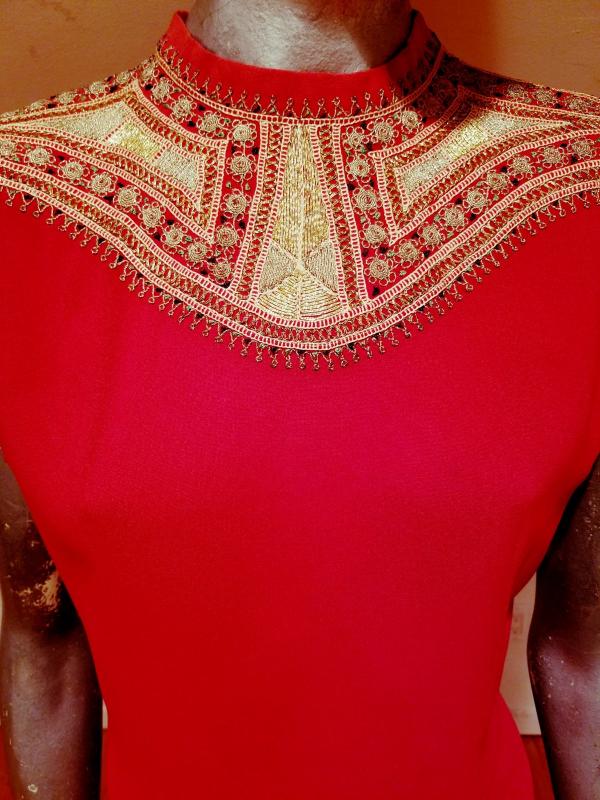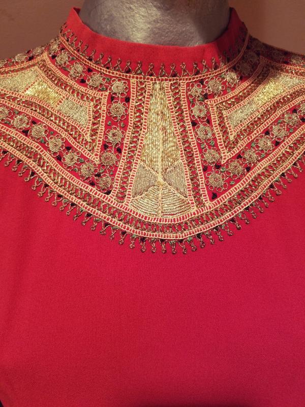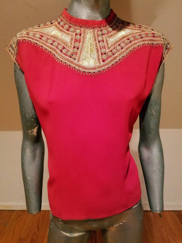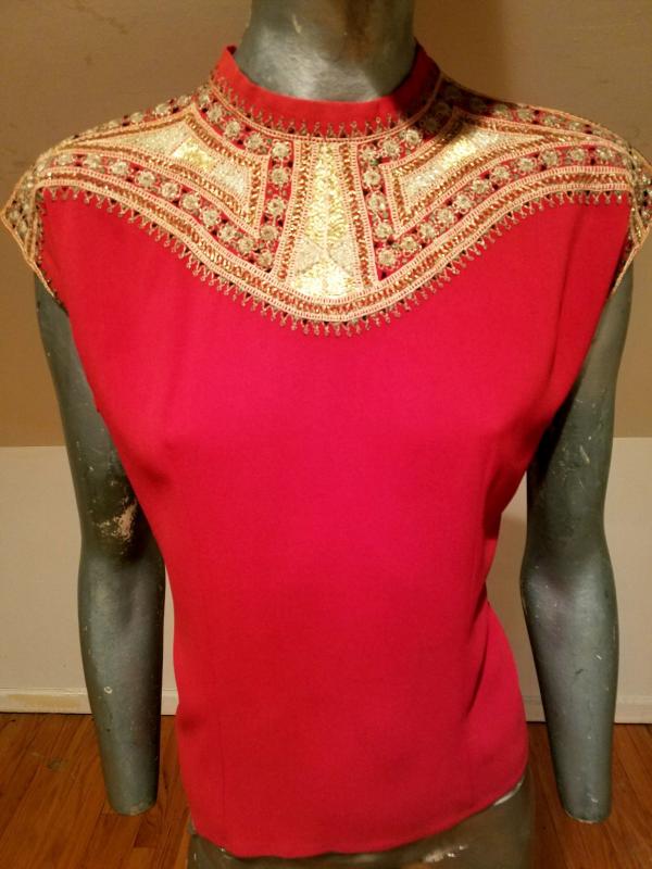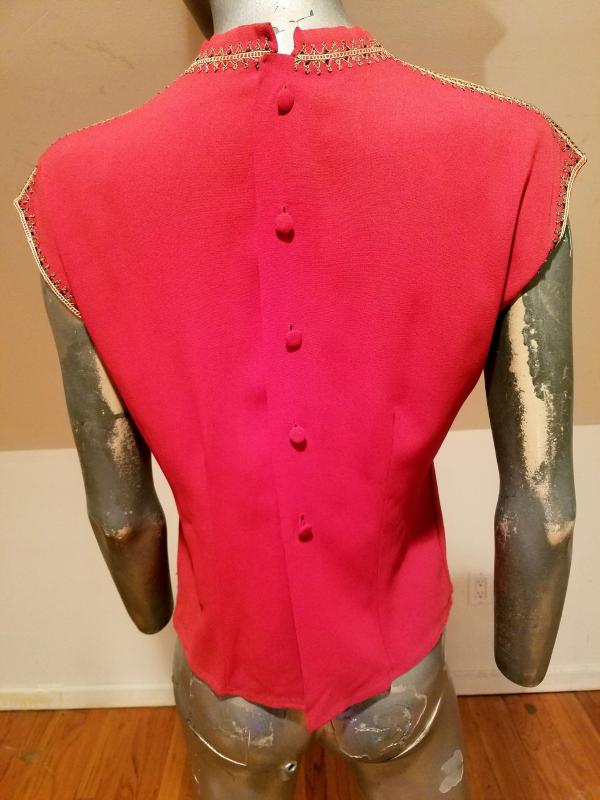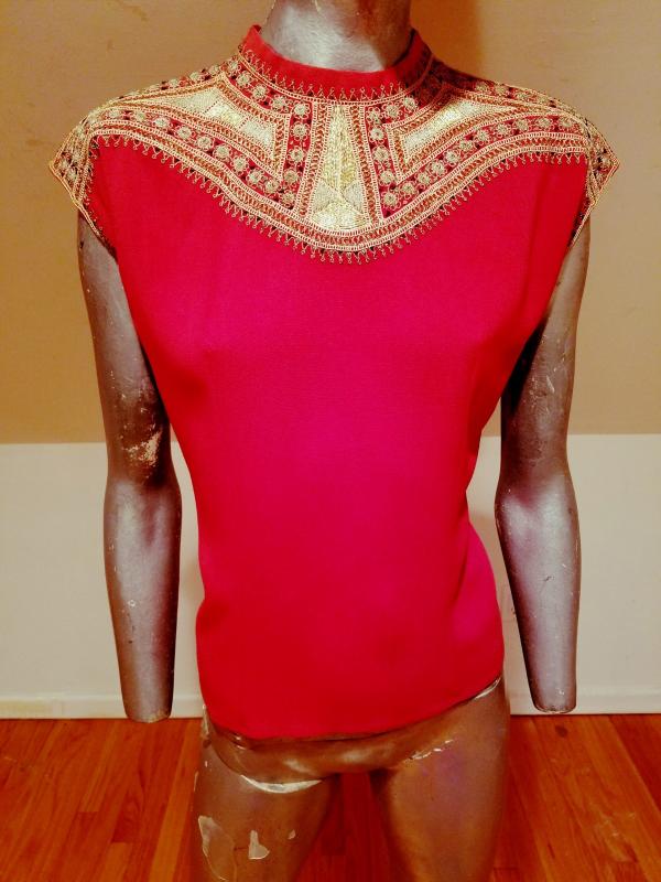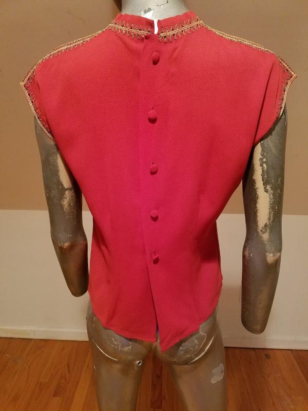 This top is drop dead gorgeous. It is Moroccan Circa 1930's and is actually embroidered by hand with gold threads. The embroidery is out of this world. . The back closure has covered buttons. Truly a magnificent wearable ancient Art