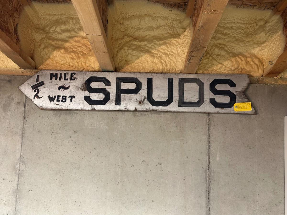 CIRCA 1940 LARGE WOODEN "SPUDS" SIGN