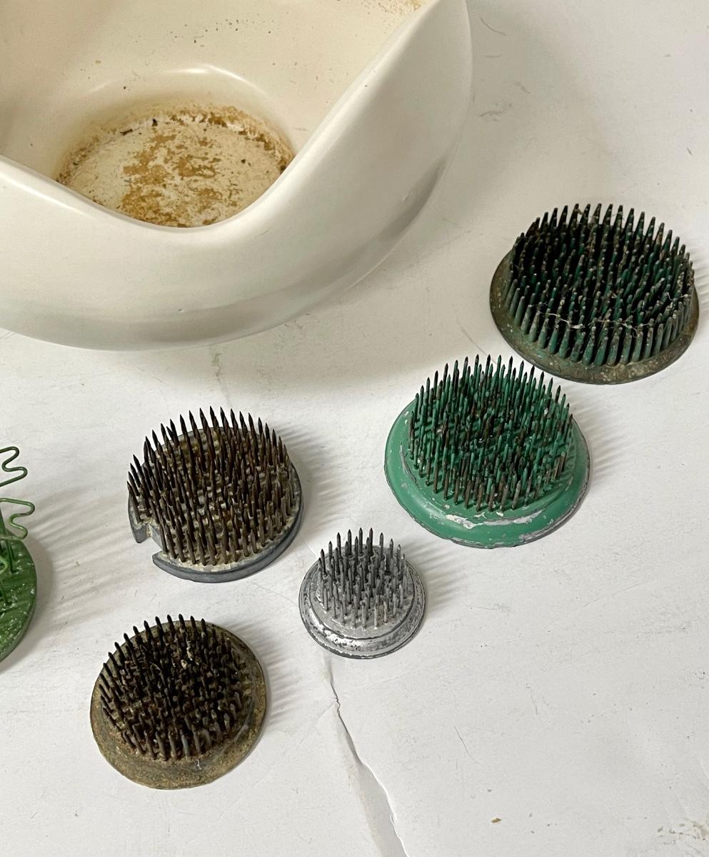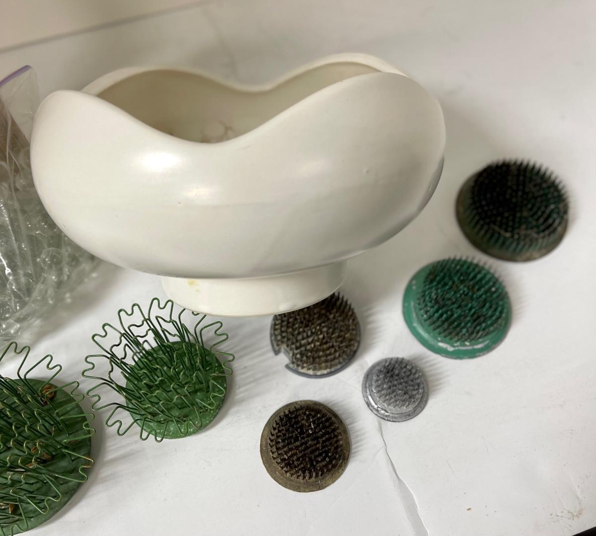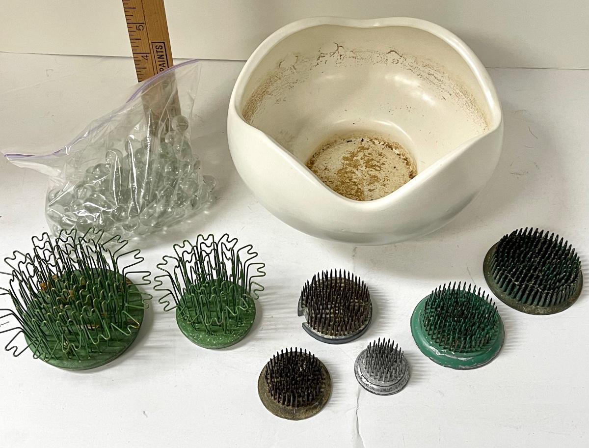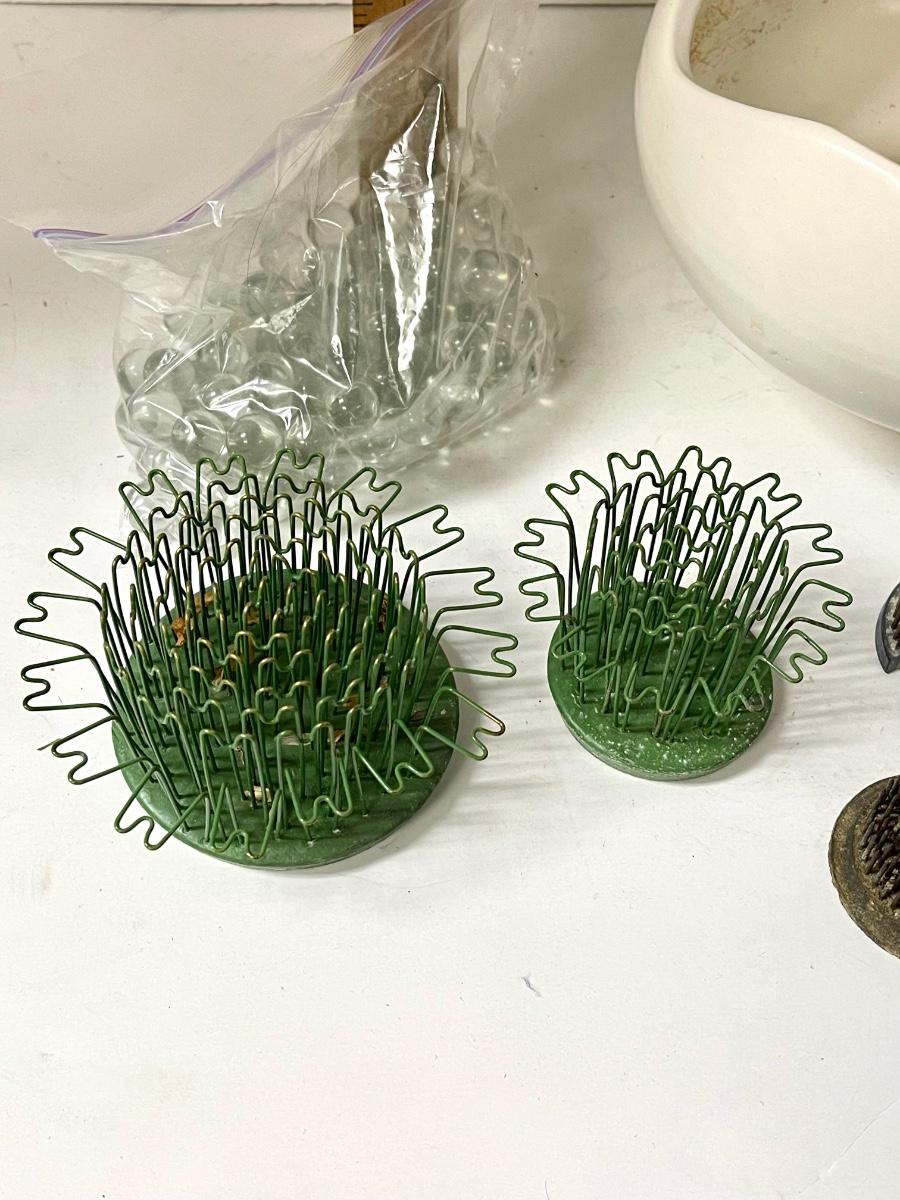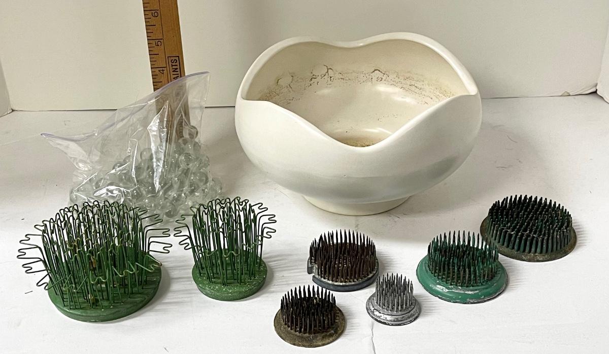 Circa 1940’s HALL planter pot with metal flower frog collection