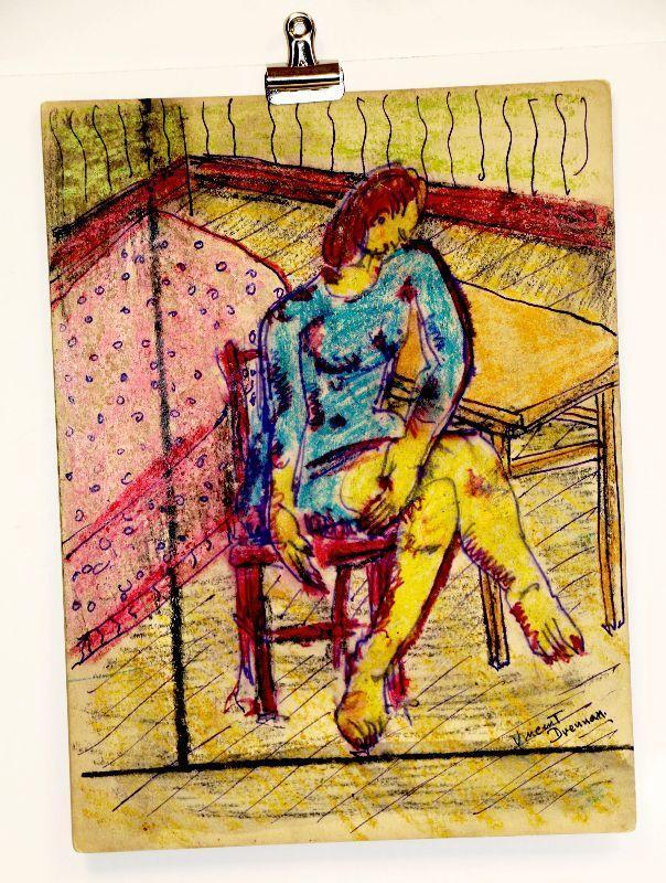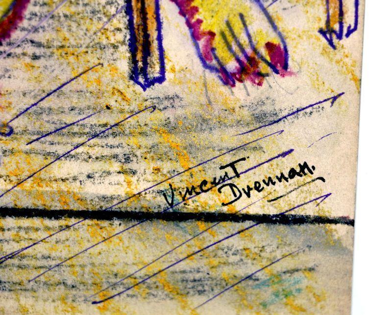 Original painting signed by artist Vincent Drennan. Medium: Pastel, Support: Paper, Artist: Vincent Drennan, Signature: Yes, lower right, Approximate Work size: 12" x 9", Date of creation: 1940's, Country of Origin: American, Condition: good/very good - as seen on pictures.