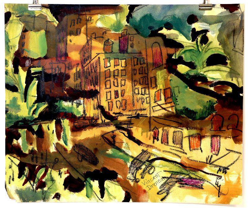 Original painting signed by artist Vincent Drennan. Medium: Pastel/Watercolor, Support: Paper, Artist: Vincent Drennan, Signature: Yes, lower center-right, Approximate Work size: 22" x 18", Date of creation: 1940's, Country of Origin: American, Condition: good/very good - as seen on pictures.