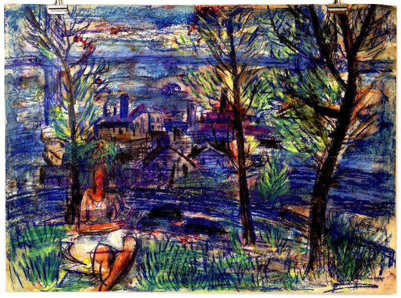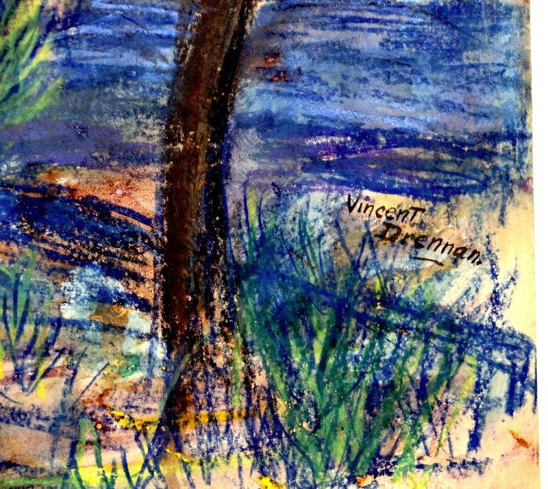 circa 1940's Pastel/Watercolor 24" x 18" Signed Vincent Drennan #068