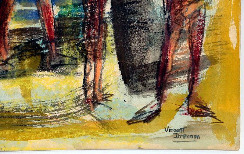 Original painting signed by artist Vincent Drennan. Medium: Pastel/Watercolor/Goach Support: Paper, Artist: Vincent Drennan, Signature: Yes, lower right, Approximate Work size: 24" x 18", Date of creation: 1940's, Country of Origin: American, Condition: good/very good - as seen on pictures.