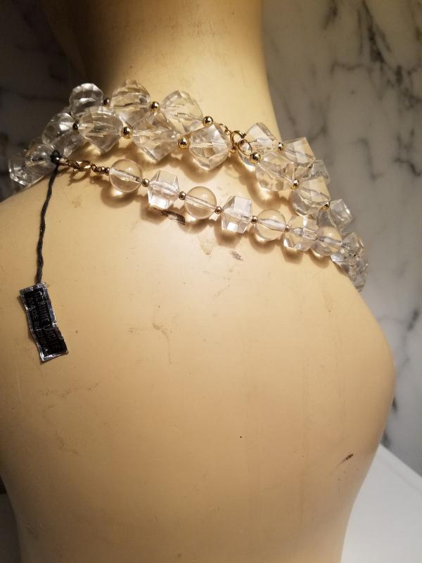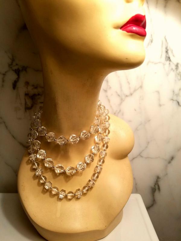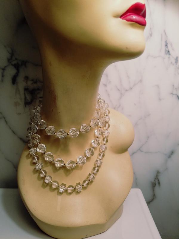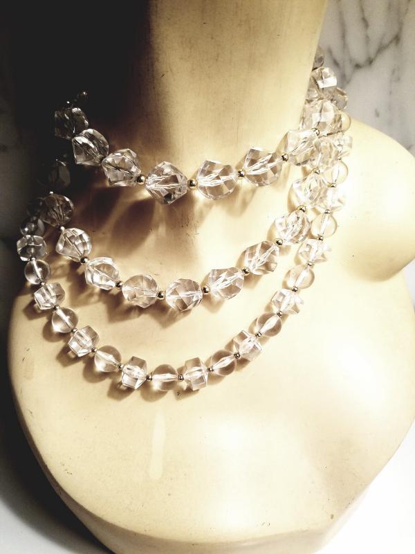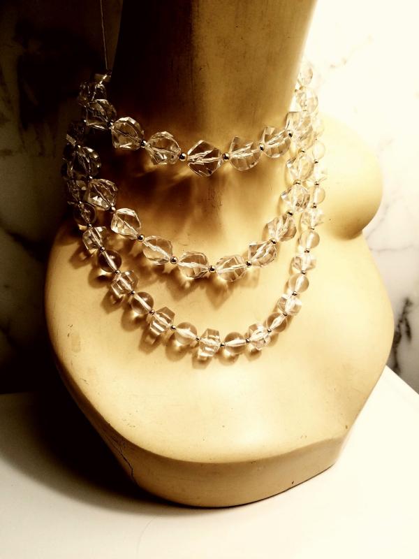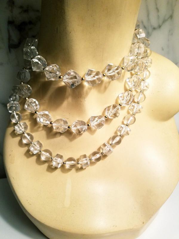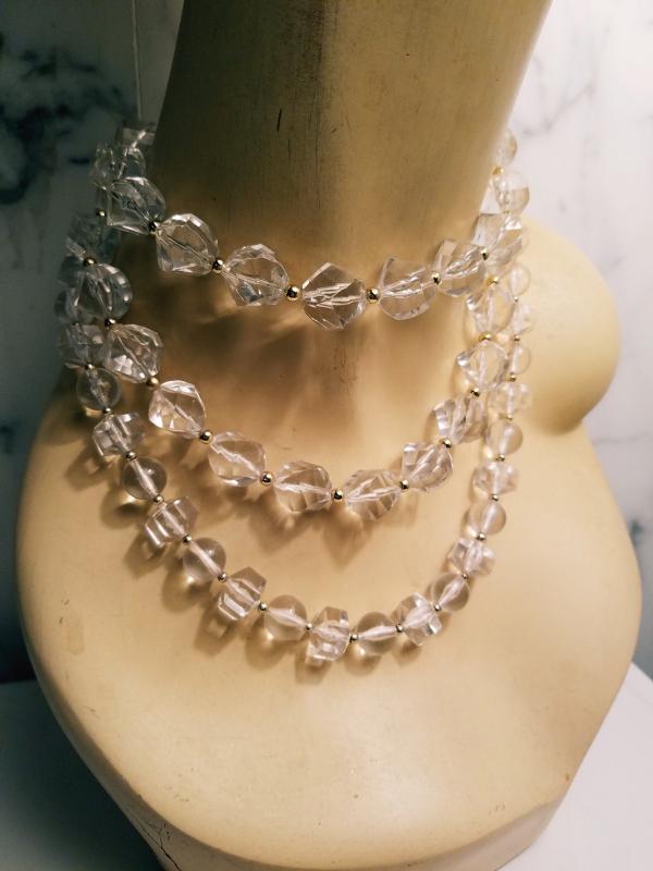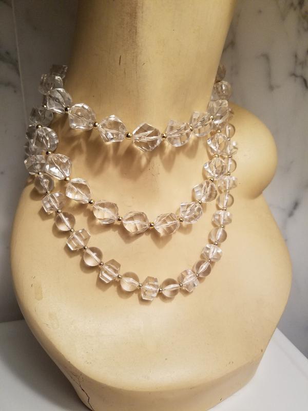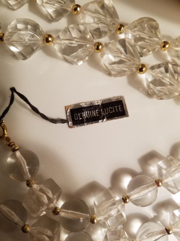 These are the real deal Real Lucite 2 necklaces. I have doubled the long one and both together can be worn as 3 strand necklaces. They sparkle like crystals. and are truly a wearable work of Art.
