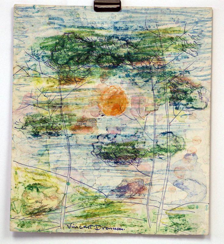 circa 1940's Watercolor 10" x 9" Signed Vincent Drennan #007
