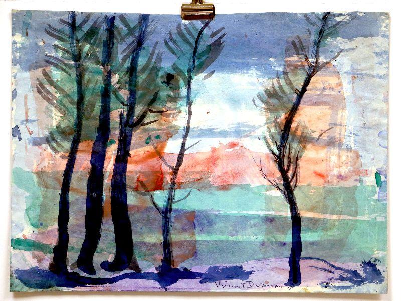circa 1940's Watercolor 14" x 10.5 Signed Vincent Drennan #014