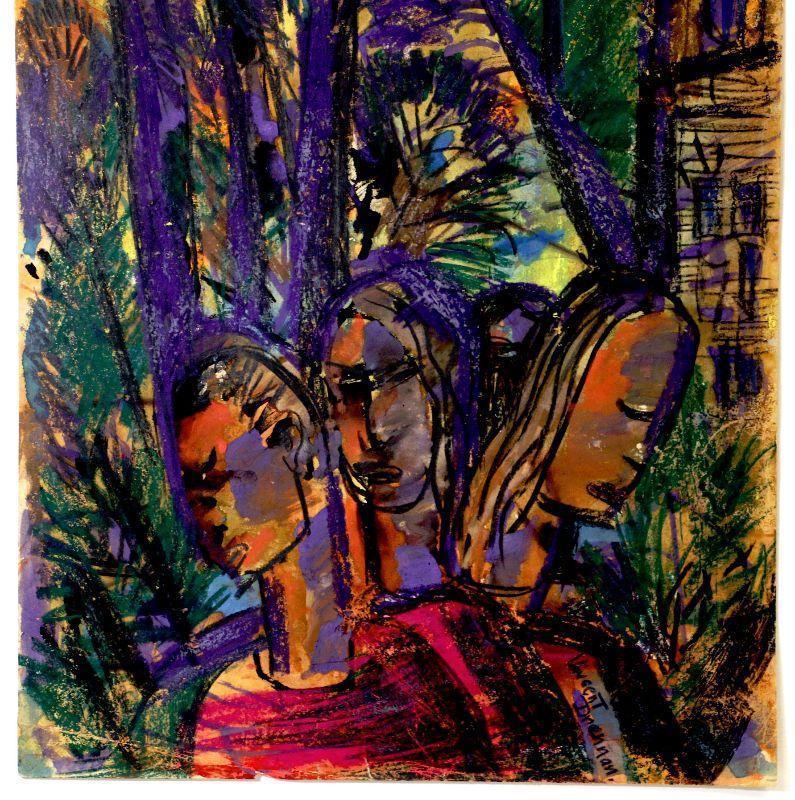 Original painting signed by artist Vincent Drennan. Medium: Watercolor/Goach/Pastel, Support: Paper, Artist: Vincent Drennan, Signature: Yes, lower right, Approximate Work size: 24" x 18", Date of creation: 1940's, Country of Origin: American, Condition: good/very good - as seen on pictures.