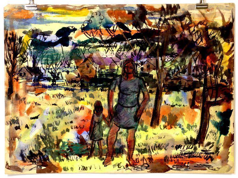 Original painting signed by artist Vincent Drennan. Medium: Watercolor/Goach/Pastel, Support: Paper, Artist: Vincent Drennan, Signature: Yes, lower right, Approximate Work size: 24" x 18", Date of creation: 1940's, Country of Origin: American, Condition: good/very good - as seen on pictures.