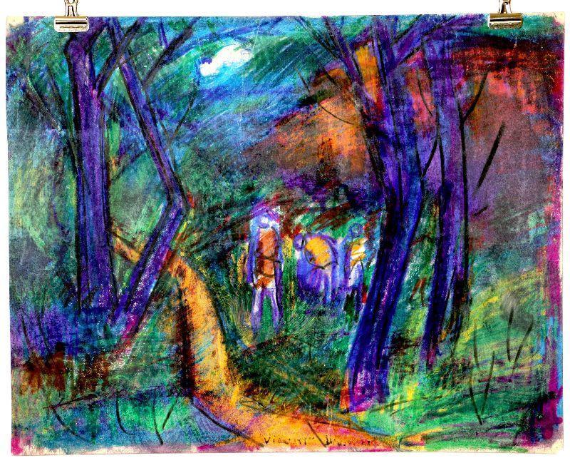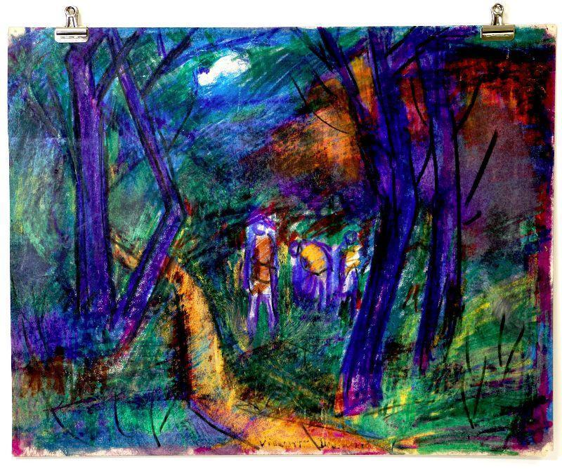 Original painting signed by artist Vincent Drennan. Medium: Pastel/Watercolor, Support: Paper, Artist: Vincent Drennan, Signature: Yes - twice, lower center and on the back of the painting, Approximate Work size: 20" x 16", Date of creation: 1941, Country of Origin: American, Condition: good/very good - as seen on pictures.