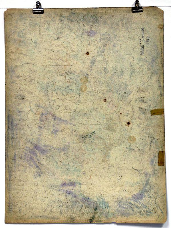 Original painting signed by artist Vincent Drennan. Medium: Pastel/Watercolor, Support: Paper, Artist: Vincent Drennan, Signature: Yes, lower center and on the back of the painting, Approximate Work size: 24" x 18", Date of creation: 1941/42, Country of Origin: American, Condition: good/very good - as seen on pictures.