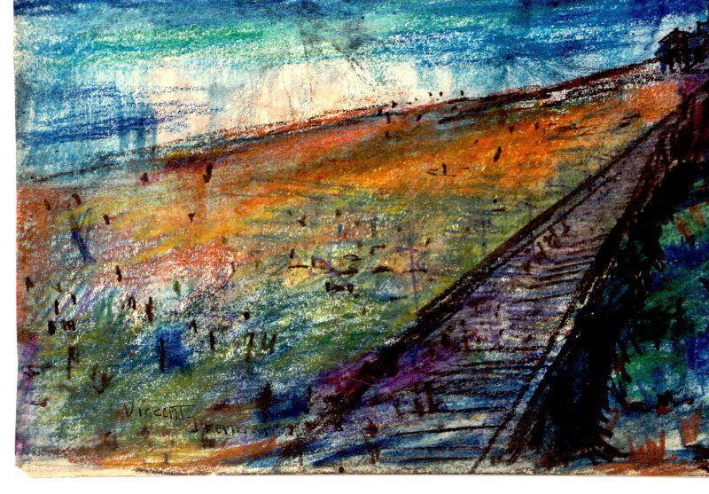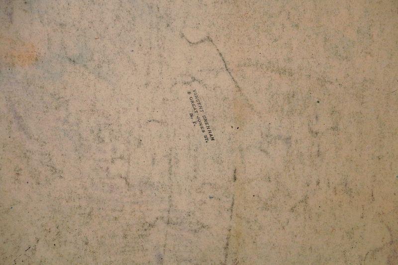 Original painting signed by artist Vincent Drennan. Medium: Pastel/Watercolor, Support: Paper, Artist: Vincent Drennan, Signature: Yes - twice, lower left and on the back of the painting, Approximate Work size: 20" x 16", Date of creation: 1942, Country of Origin: American, Condition: good/very good - as seen on pictures.