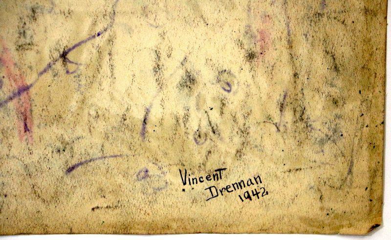 circa 1942 Pastel/Watercolor 24" x 18" Signed Vincent Drennan #055