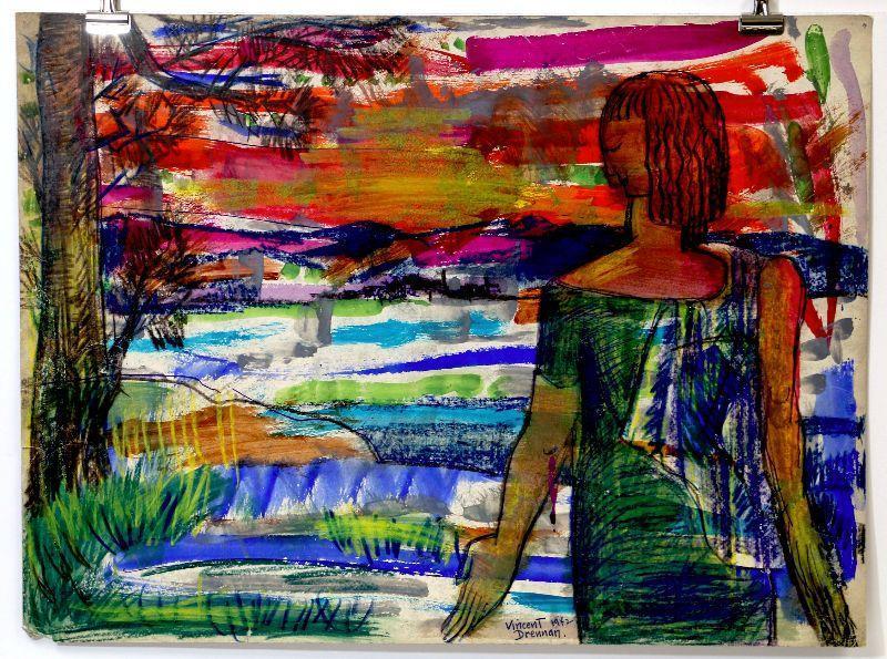 Original painting signed by artist Vincent Drennan. Medium: Pastel/Watercolor, Support: Paper, Artist: Vincent Drennan, Signature: Yes, lower center-right, Approximate Work size: 24" x 18", Date of creation: 1942, Country of Origin: American, Condition: good/very good - as seen on pictures.