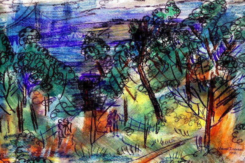 circa 1942 Pastel/Watercolor Painting 24" x 18" Signed Vincent Drennan #035
