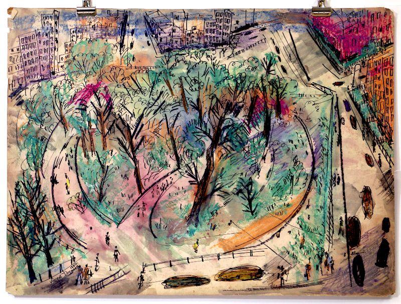 circa 1942 Watercolor 24" x 18" Signed Vincent Drennan #040
