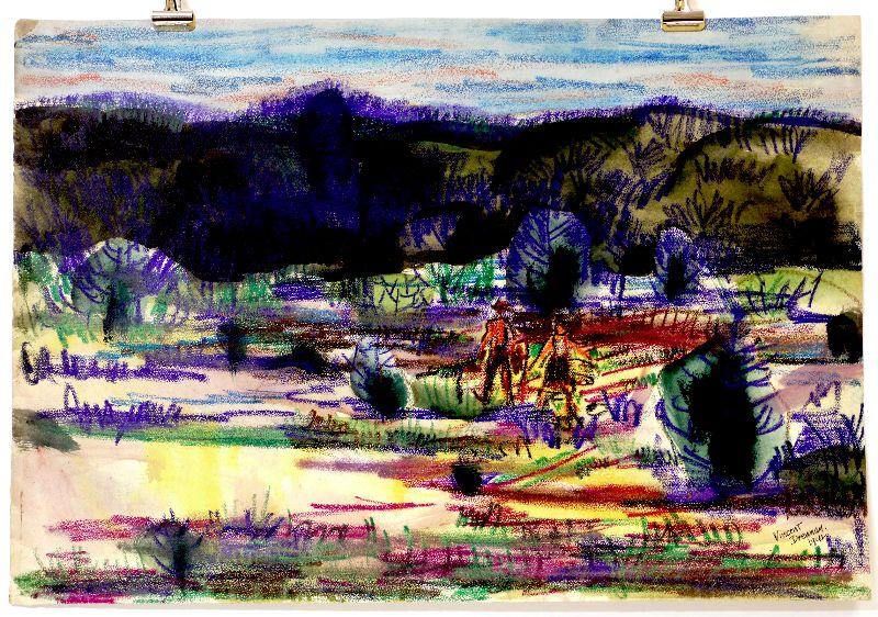 circa 1942 Watercolor 24" x 16.5" Signed Vincent Drennan #043
