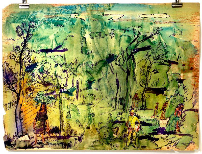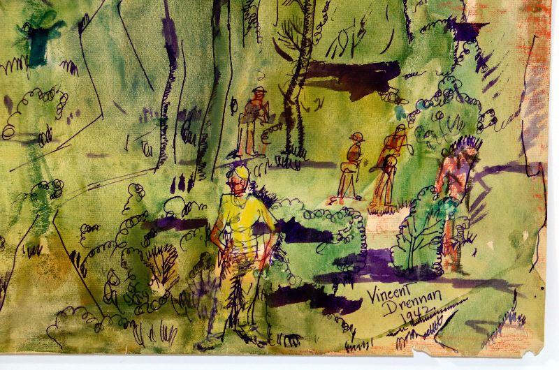 circa 1942 Watercolor 24" x 18" Signed Vincent Drennan #067