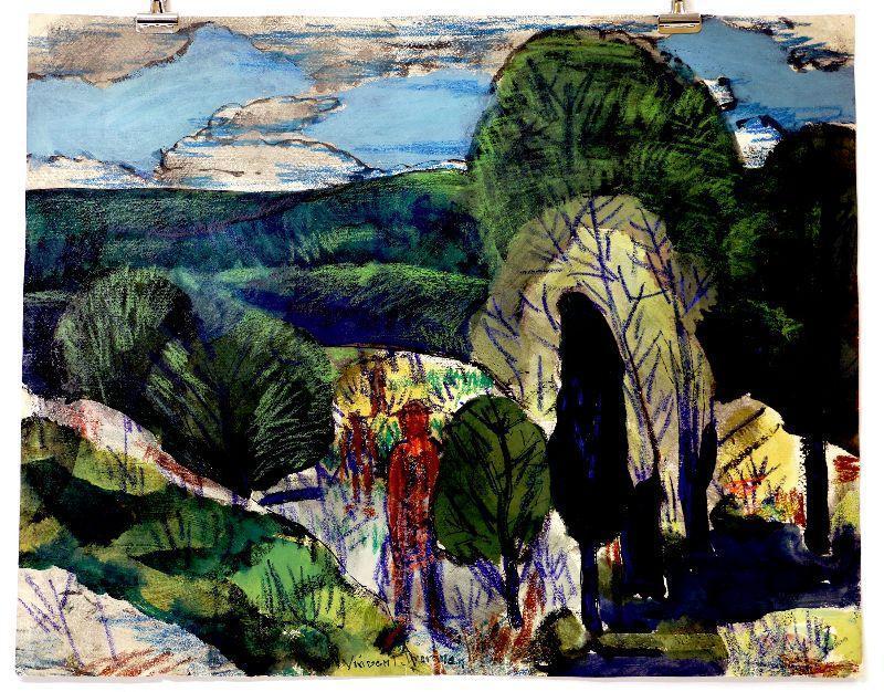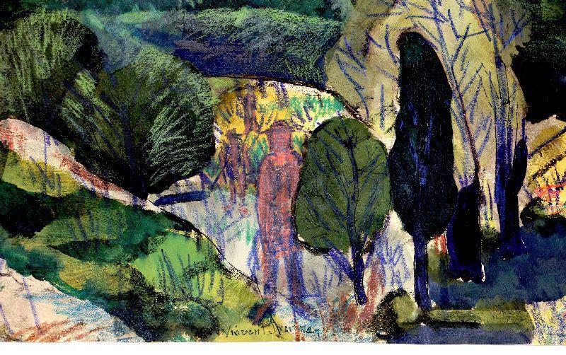 circa 1942 Watercolor 24" x 19" Signed Vincent Drennan #044