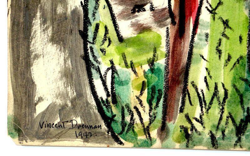 circa 1942 Watercolor 24" x 18" Signed Vincent Drennan #051