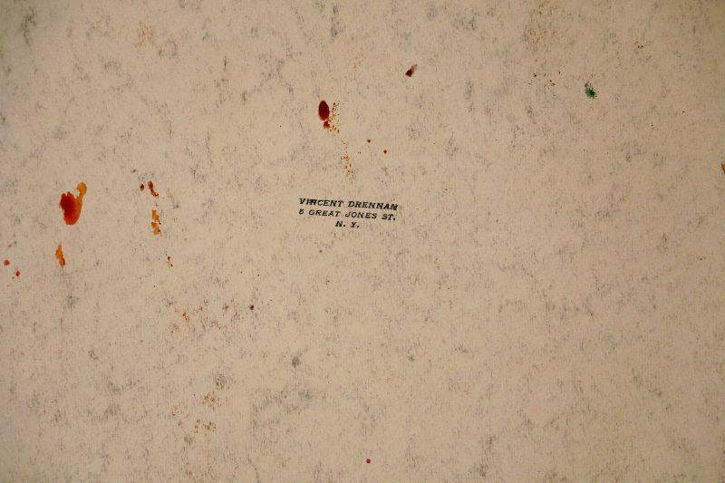 Original painting signed by artist Vincent Drennan. Medium: Watercolor/Goach/Pastel, Support: Paper, Artist: Vincent Drennan, Signature: Yes, lower left, Approximate Work size: 24" x 18", Date of creation: 1942, Country of Origin: American, Condition: good - as seen on pictures.