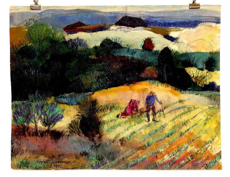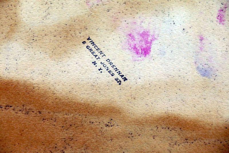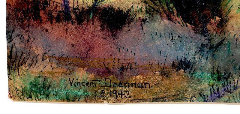 Original painting signed by artist Vincent Drennan. Medium: Watercolor/Goach/Pastel, Support: Paper, Artist: Vincent Drennan, Signature: Yes, lower left, Approximate Work size: 24" x 18", Date of creation: 1942, Country of Origin: American, Condition: good - as seen on pictures.