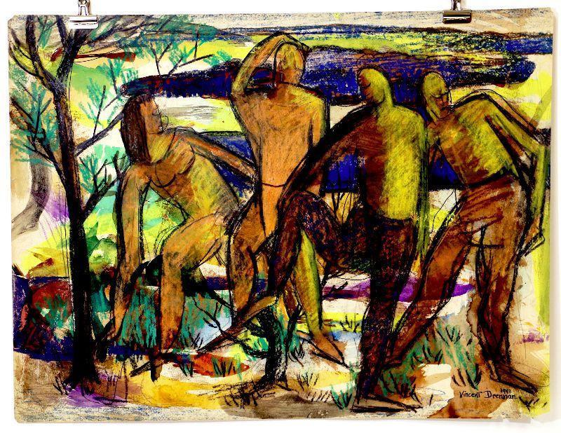 circa 1943 Pastel/Watercolor 24" x 18" Signed Vincent Drennan #061