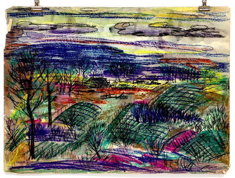 circa 1943 Pastel/Watercolor 24" x 18" Signed Vincent Drennan #028
