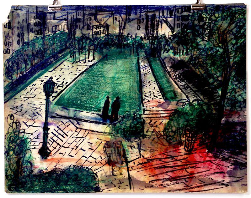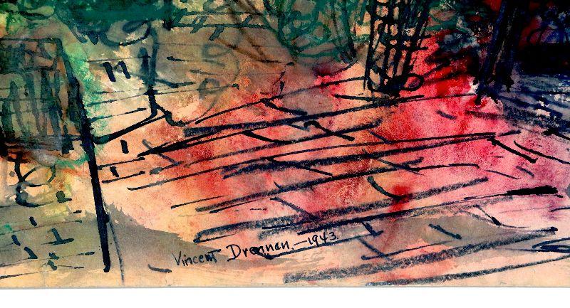 circa 1943 Watercolor 23" x 18" Signed Vincent Drennan #047