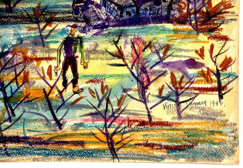 circa 1948 Pastel/Watercolor 24" x 18" Signed Vincent Drennan #066