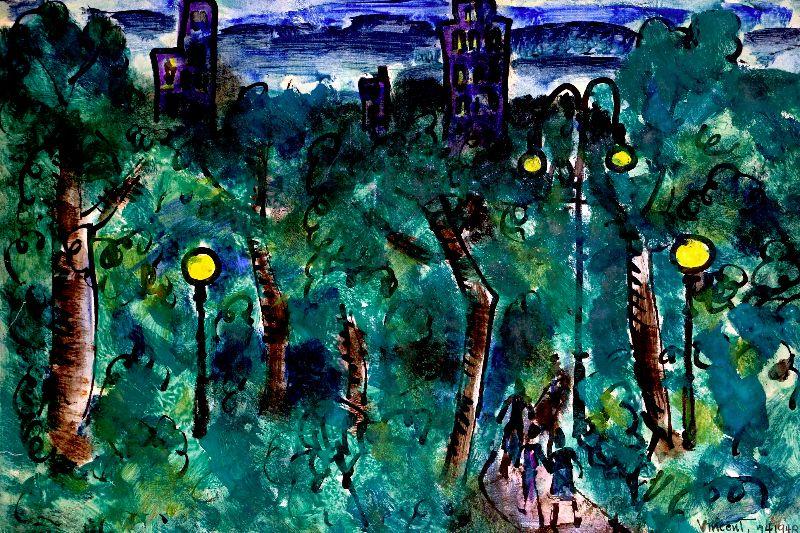 Original painting signed by artist Vincent Drennan. Medium: Watercolor/Goach/Pastel, Support: Paper, Artist: Vincent Drennan, Signature: Yes, lower right, Approximate Work size: 24" x 18", Date of creation: 1948, Country of Origin: American, Condition: good/very good - as seen on pictures.