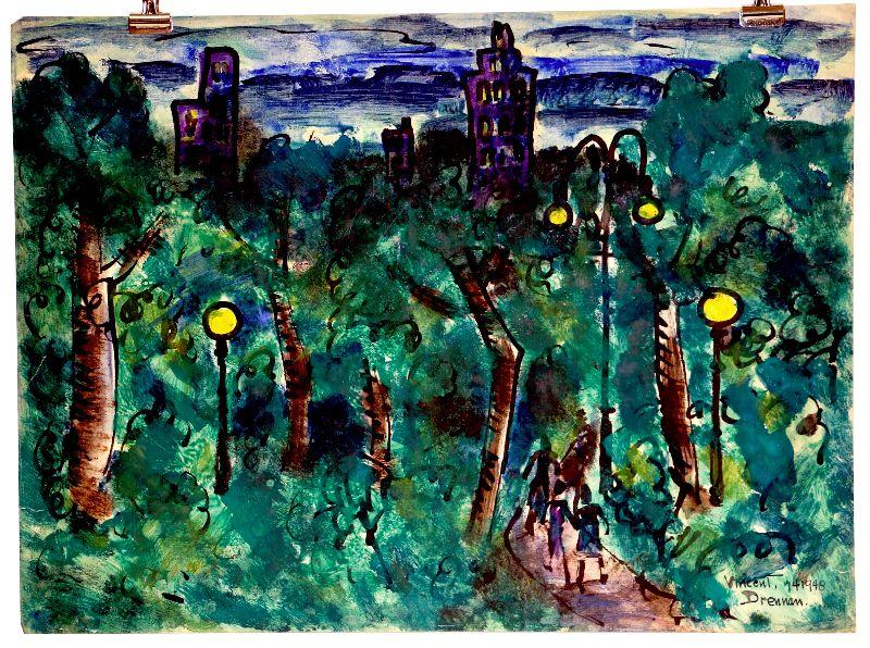 circa 1948 Watercolor 24" x 18" Signed Vincent Drennan #034