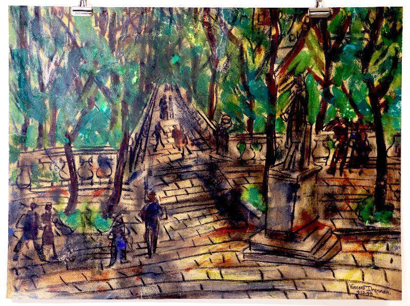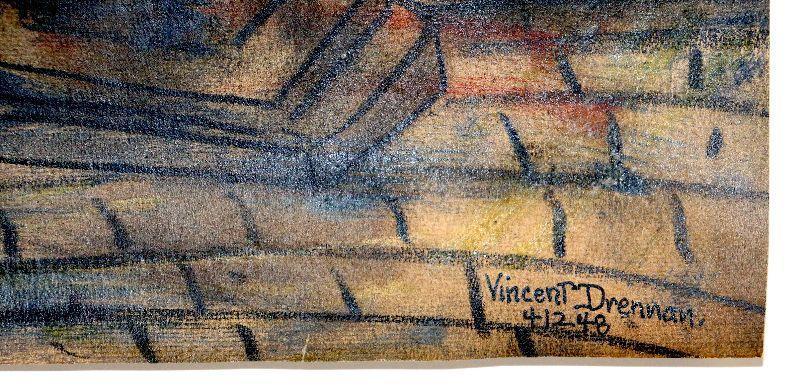 circa 1948 Watercolor 24" x 18" Signed Vincent Drennan #046