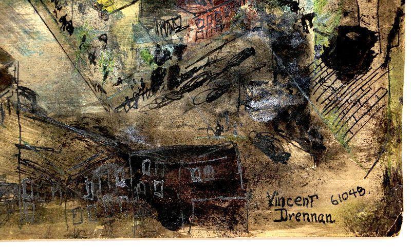 Original painting signed by artist Vincent Drennan. Medium: Watercolor/Goach, Support: Paper, Artist: Vincent Drennan, Signature: Yes, lower right, Approximate Work size: 24" x 18", Date of creation: 1948, Country of Origin: American, Condition: good/very good - as seen on pictures.