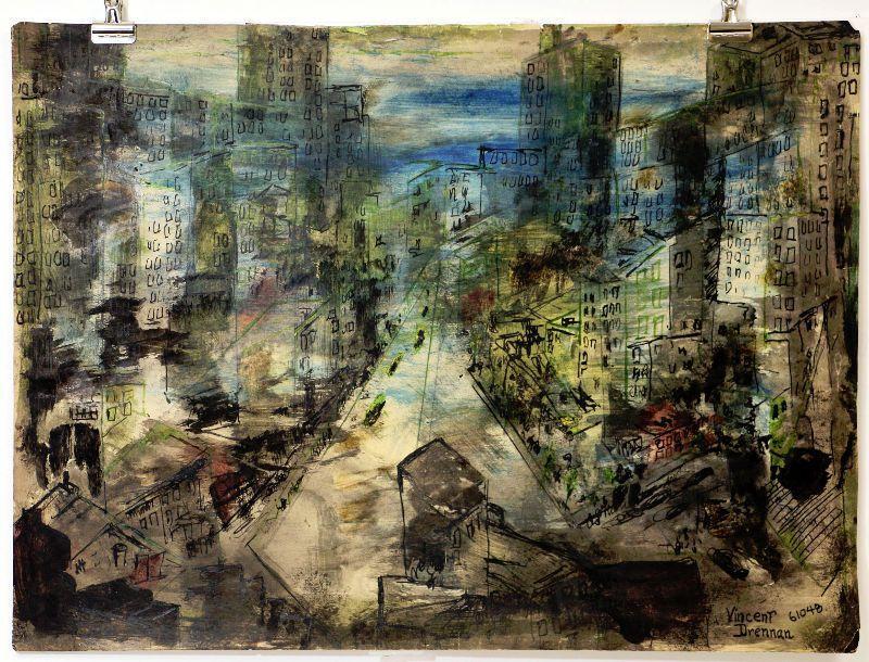 circa 1948 Watercolor 24" x 18" Signed Vincent Drennan #089
