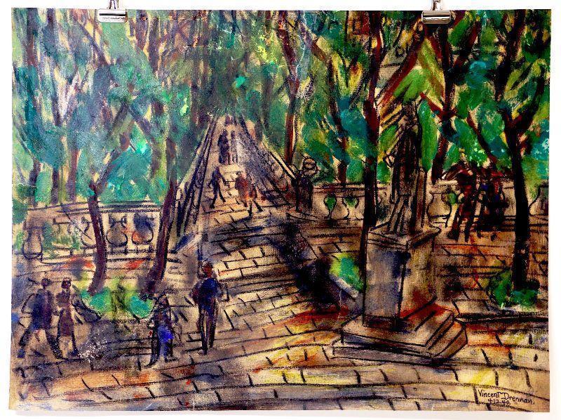 circa 1948 Watercolor 24" x 18" Signed Vincent Drennan #046