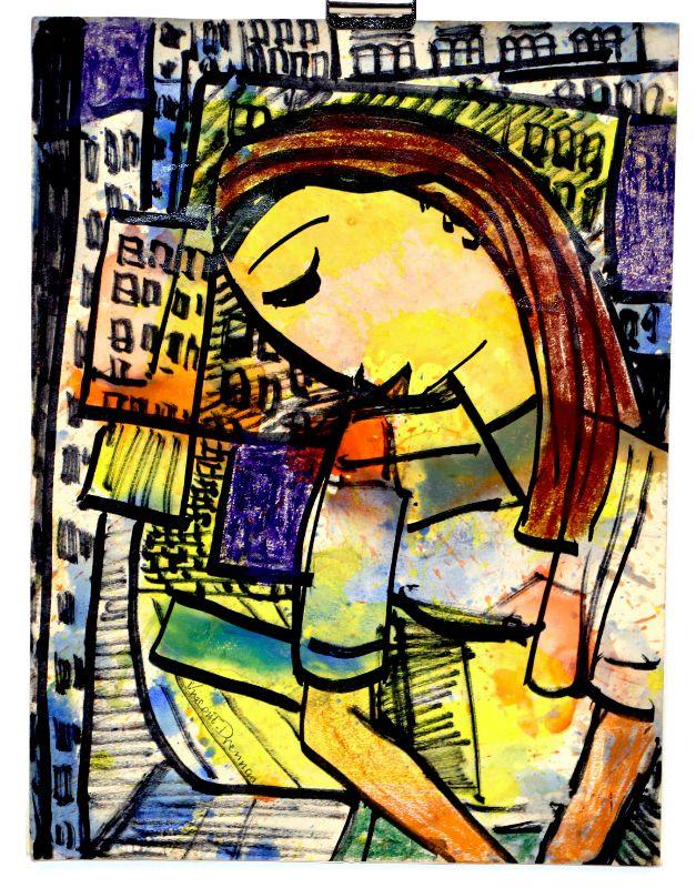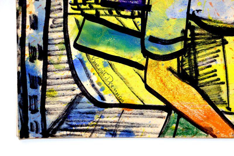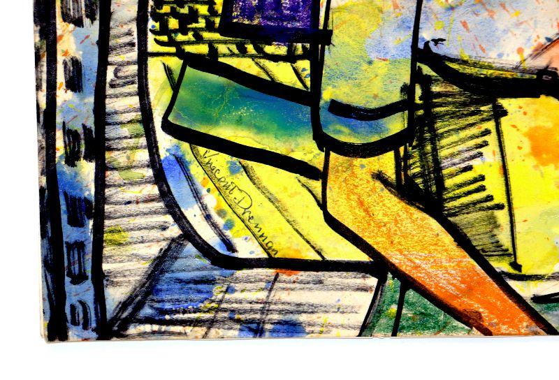Original painting signed by artist Vincent Drennan. Medium: Watercolor/Goach/Pastel, Support: Paper, Artist: Vincent Drennan, Signature: Yes, lower left, Approximate Work size: 12" x 9", Date of creation: 1950's, Country of Origin: American, Condition: good/very good - as seen on pictures.