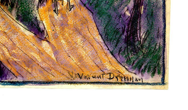 circa 1950's Watercolor/Pastel w/Sketch 12" x 9.5" Signed Vincent Drennan #002