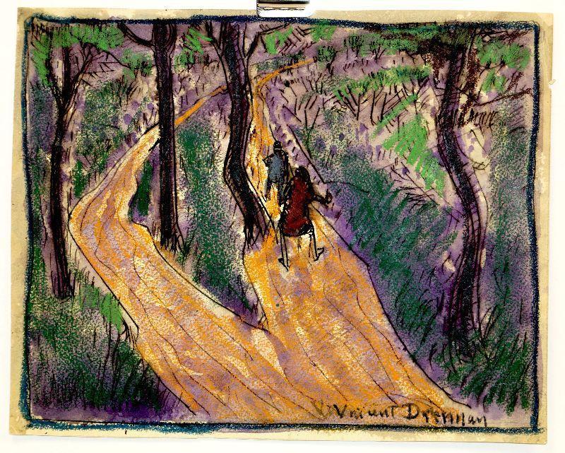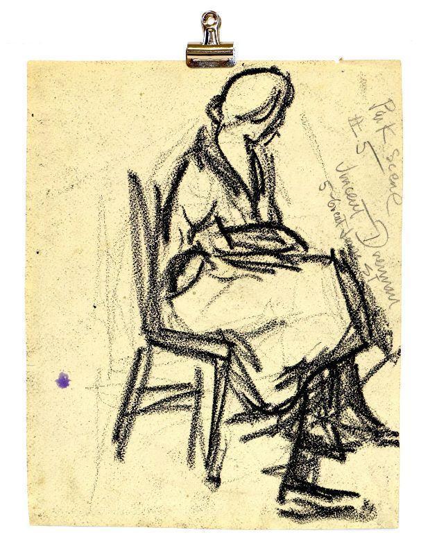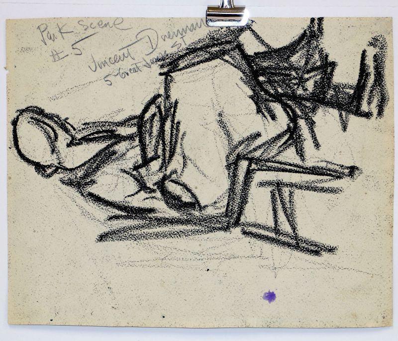 circa 1950's Watercolor/Pastel w/Sketch 12" x 9.5" Signed Vincent Drennan #002