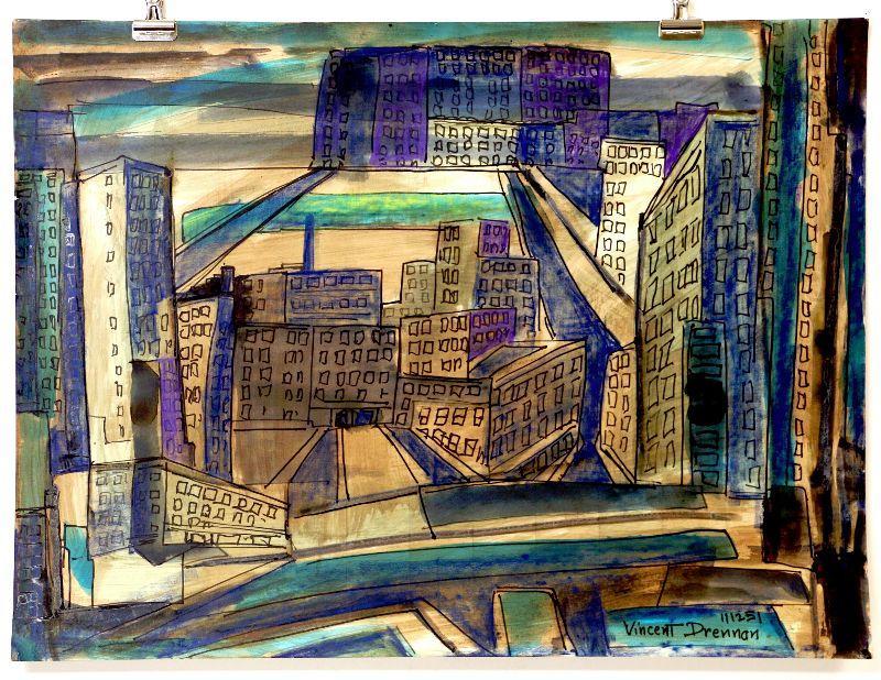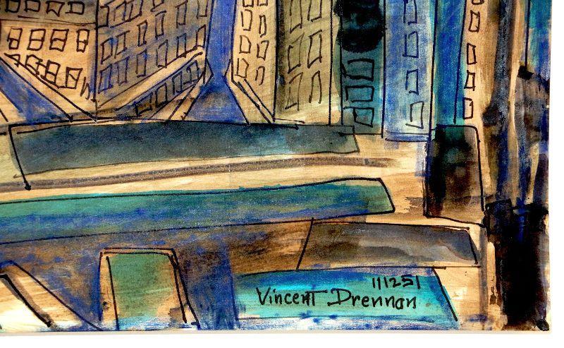 circa 1951 Watercolor 24" x 18" Signed Vincent Drennan #095