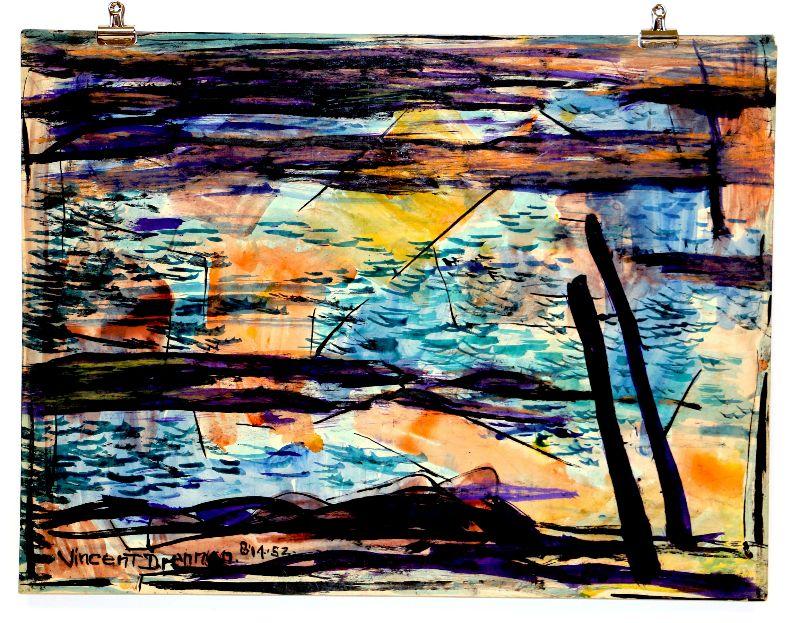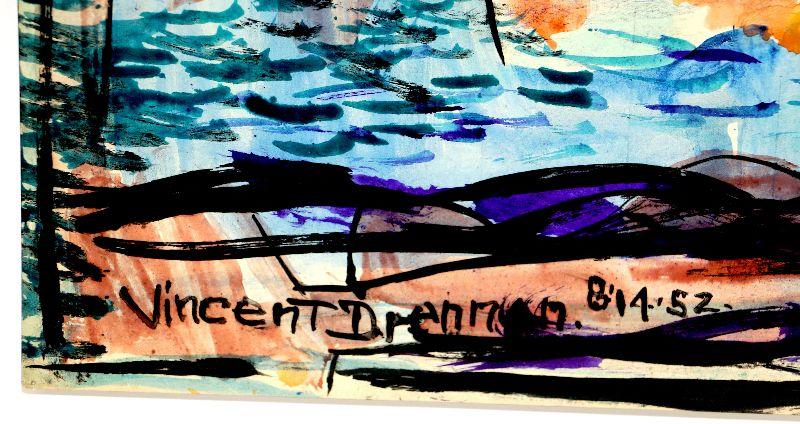 circa 1952 Watercolor 24" x 18" Signed Vincent Drennan #024