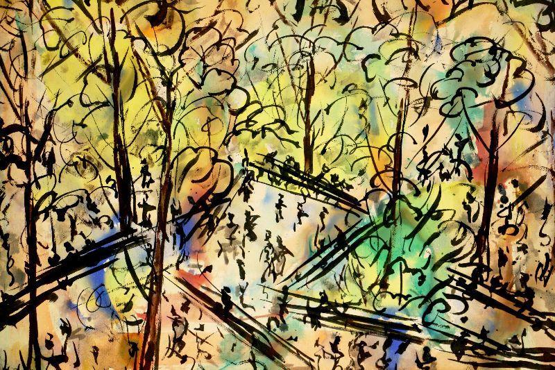 Original painting signed by artist Vincent Drennan. Medium: Watercolor/Goach, Support: Paper, Artist: Vincent Drennan, Signature: Yes, lower right, Approximate Work size: 24" x 18", Date of creation: 1955, Country of Origin: American, Condition: good/very good - as seen on pictures.